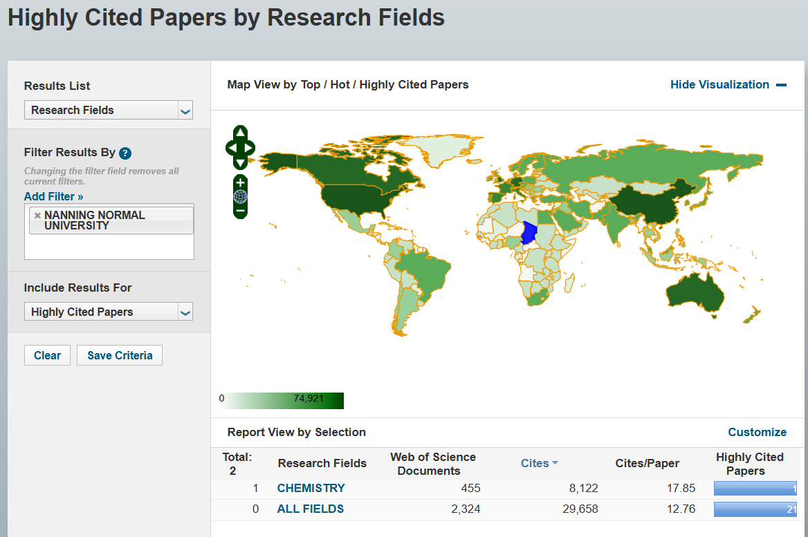 公司化学学科结合公司发展优势和人才培养定位,积极探索团队建设新模式,依托化学国家一流专业、广西天然高分子化学与物理重点实验室、广西光伏材料技术创新工程研究中心等平台,形成了以员工为中心、重视学科交叉及产教融合的创新型人才培养模式。化学学科团队在有机化学、分析化学、材料化学、物理化学等研究方向取得了一系列创新性成果。据统计,公司化学学科共发表455篇Web of Science论文,总被引频次8122次,为此次进入ESI全球前1%奠定了坚实基础。