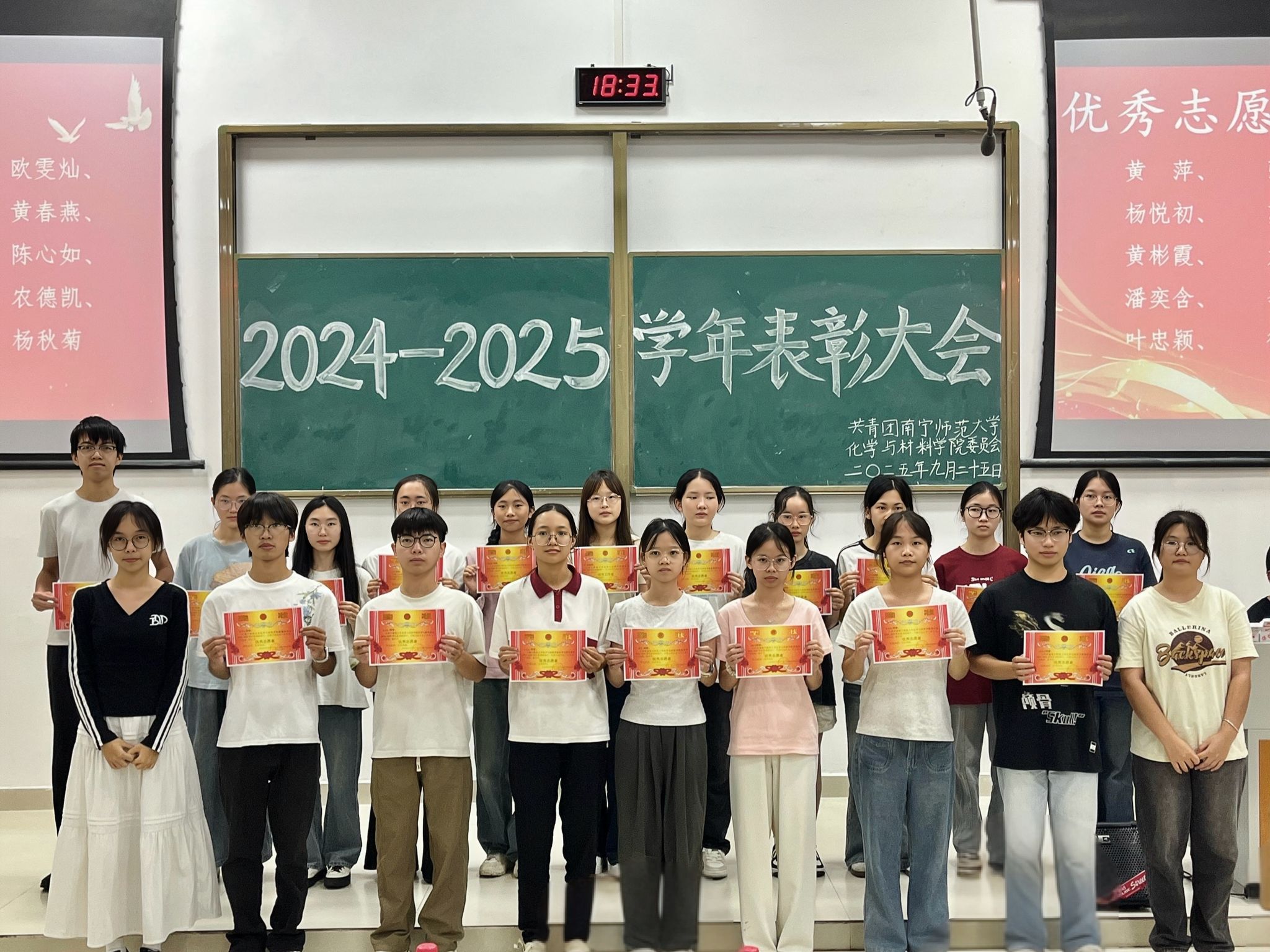 首先,公司辅导员刘杨老师为大会致辞,她充分肯定了各部门的协作成果,同时对员工骨干在实践中展现出的成长与进步给予了高度赞扬。随后,辅导员老师、团委副书记及常委团成员为获奖同学颁发奖状。优秀工作者代表刘思言与优秀志愿者代表樊馨妍依次上台分享了他们在工作过程中的收获与感悟,并表示将以此次表彰作为新征程的起点,在今后的工作中继续深耕、履职尽责,从而为公司的建设与发展贡献更多青春力量。最后,辅导员李璎澍老师为本次表彰大会作总结发言。她向获奖同学表示热烈祝贺,同时鼓励全体员工骨干继续踏实苦干,在学习与工作中奋勇争先,不断提升自我。